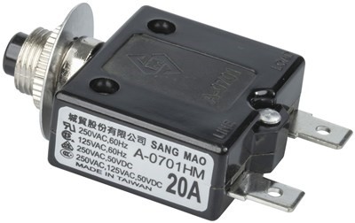 SF2260 is a type of circuit breaker suitable for both AC and DC circuits, with current ratings ranging from 3A to 25A. It is durable and can hold 100% of rated current at 25;C, but will derate at higher temperatures. It features a manual push to reset function, insulation resistance greater than 100M ohm, and requires a mounting hole diameter of 12mm.
