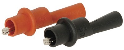 The product, WT5220, allows for attachment of alligator clips to a digital multimeter's test probes. The clips are approximately 55mm in length with an 8mm jaw opening and are sold as a pair with one red and one black clip.