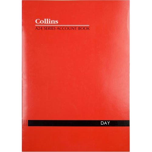COLLINS A24 SERIES ACCOUNT BOOK DAY FEINT RULED STAPLED 24 LEAF A4 RED