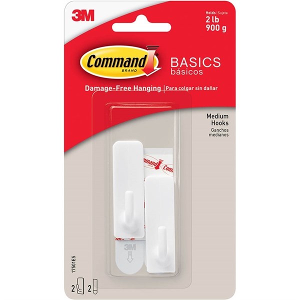 COMMAND ADHESIVE HOOKS MEDIUM PACK 2