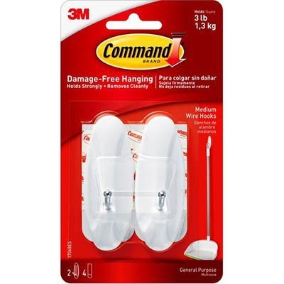 COMMAND ADHESIVE WIRE HOOKS MEDIUM WHITE PACK 2 HOOKS AND 4 STRIPS