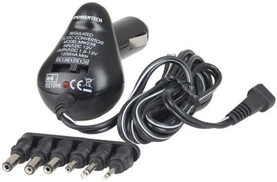 The MP3678 is a car charger that comes with a one-year warranty. It allows users to power or charge devices such as phones, audio players, game consoles, and PDAs using their car's cigarette lighter socket. It offers seven different DC voltages and six adaptor tips to choose from.