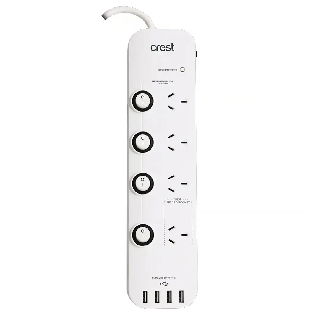 Tired of juggling chargers and hunting for power points? This Crest 4-socket power board with four built-in USB ports is a game-changer for any home or office. Perfect for keeping all your devices powered up and organised, from phones and tablets to laptops and lamps. The integrated USB ports mean you can ditch those bulky power bricks, and the generous 1.2m cord gives you flexibility in placement. At Localworks, we appreciate practical solutions like this that simplify everyday life. It s a straightforward, reliable way to manage your power needs, ensuring you ve always got a spot ready for your gear. Great for busy desks, entertainment areas, or anywhere you need more convenient power access.