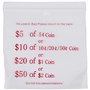 Cumberland clear plastic Press Seal coin bags with denominations and values for 5c, 10c, 20c, 50c, $1, $2 coins printed red -  Red printed coin denominations