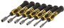 This set of hex nut drivers comes with a 1-year warranty and includes sizes M3 to M6. The deep sockets allow for longer threads to protrude from the nut being tightened, and the set comes with a plastic storage pouch.