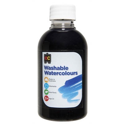 EDUCATIONAL COLOURS WASHABLE WATERCOLOUR PAINT 250ML BLACK