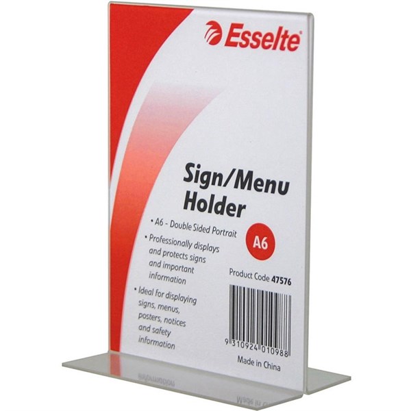 ESSELTE SIGN / MENU HOLDER DOUBLE SIDED PORTRAIT A6 CLEAR