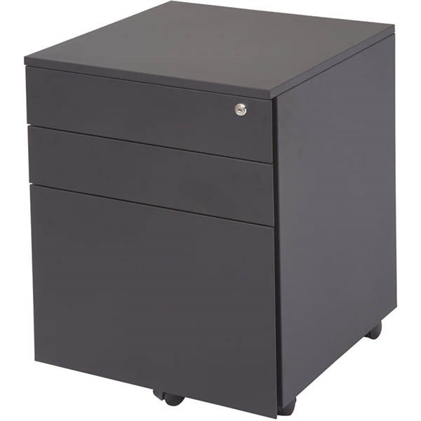 GO STEEL MOBILE PEDESTAL STEEL 3-DRAWER LOCKABLE 460 X 472 X 610MM BLACK SATIN