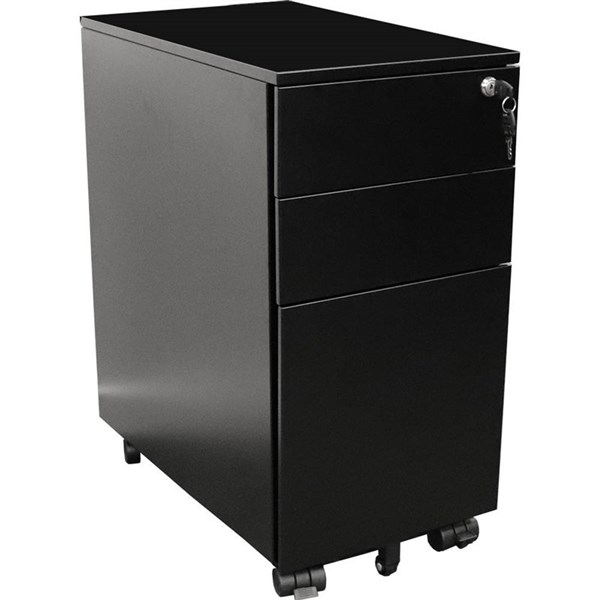 GO STEEL SLIMLINE MOBILE PEDESTAL 3-DRAWER LOCKABLE 300 X 472 X 610MM BLACK