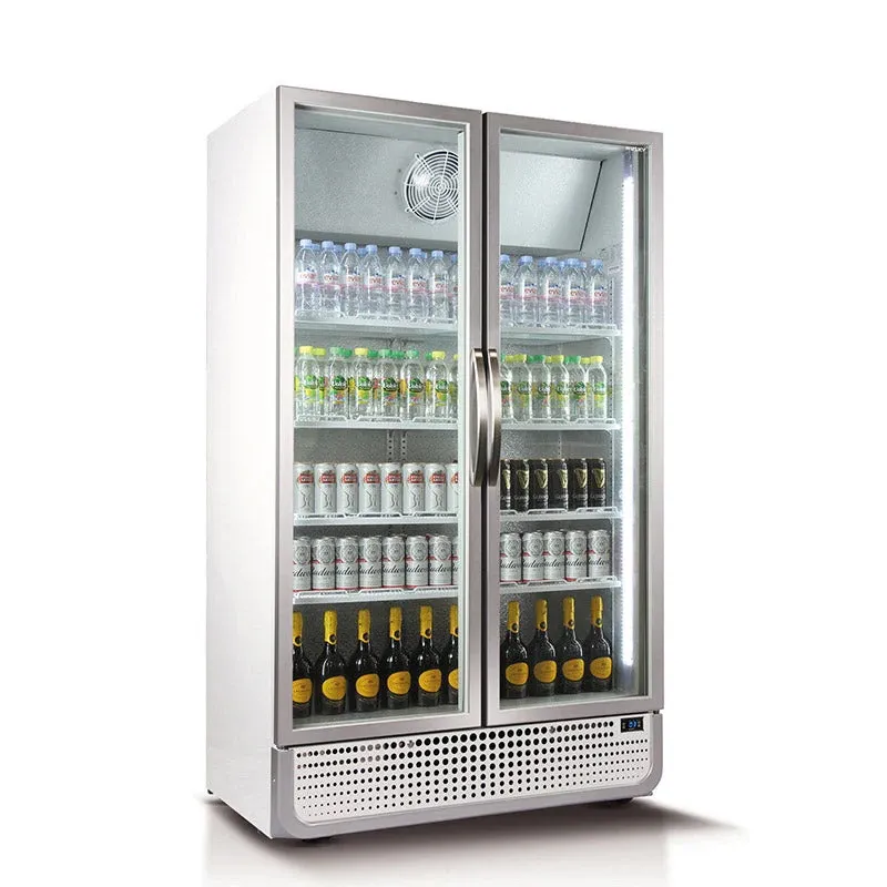 Husky 885L Double Glass Door Display Fridge - White