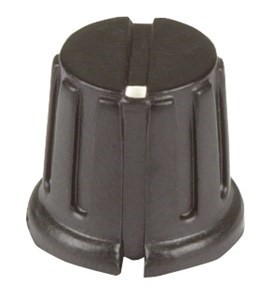 The HK7760 is a pack of plastic knobs with a 1/4 shaft grubscrew fixing. They feature a modern fluted style with a slot for pointer and a small skirt. Each pack includes one knob.