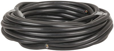 WH3090 is a 10m long, 7-conductor cable with a sturdy PVC jacket in black, convenient for wiring large boat trailers. The cable's conductors come in different colors for easy identification and are bare wire ends. No connectors are included. The conductors are: Yellow (Left indicator), Black (Aux/reversing), White (Earth), Green (Right indicator), Blue (Electric brakes), Red (Stop light), and Brown (Tail light, no. plate & clearance).