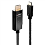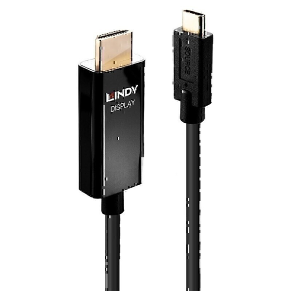 The Lindy USB Type C to HDMI 4K60 Adapter Cable with HDR enhances video capabilities through a USB Type C port, supporting DisplayPort Alternate Mode.