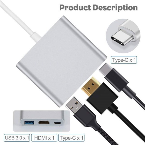 Feature:1. 3-In-1 & Multifunctional. Helps you to connect laptop with Type C male port to a display monitor/projector/HDTV with HD-MI port and other devices (phones, mouse, USB flash disk, keyboard, etc) ,with USB 3.0 port, also charges your laptop with USB Type C female port.2. Supports High Resolution. Supports video resolution up to 4K (Full HD) with easy connection of most monitors, projectors, HDTV with HD-MI port.3. USB PD (Power Delivery) Function. Type C can charge your device which was connected to the Type C male port on this adapter (Such as Huawei Mate 10, 12 inch Macbook, Google new Chromebook Pixel and more). No worrying about power shortage. Type C can not support data transfer, only charge.4. High-Speed Transmission. USB 3.0 A/F supports max current 0.9A, providing you high speed transmission up to 5Gbps. Backwards compatible with USB 2.0. Transfers your data easily and quickly (Like Samsung Galaxy S8/S8+/Note 8 and more).