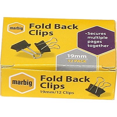 MARBIG FOLDBACK CLIPS 19MM BOX 12