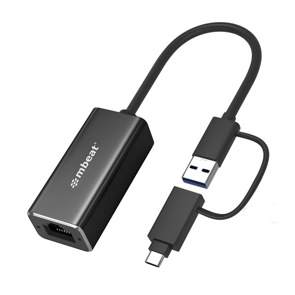mbeat 2-in-1 USB-C Gigabit LAN Adapter | Fast Ethernet