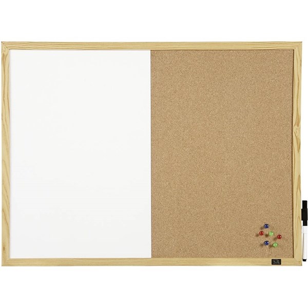 QUARTET COMBINATION BOARD PINE FRAME 900 X 600MM WHITE/OAK