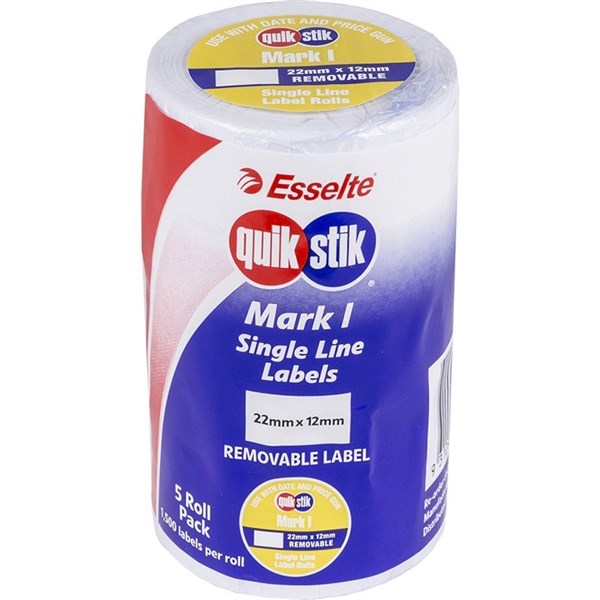 QUIKSTIK MARK I LABELS REMOVABLE WHITE 1500 LABELS/ROLL 22 X 12MM BOX 5