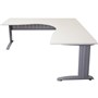 The Rapid Span Corner Desk features a 25mm melamine top with cable entries, metal legs and perforated modesty panel - The desk top is universal, this means when you assemble the desk, you can have the short side on the right or on the left, whatever suits