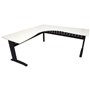 The Rapid Span Corner Desk features a 25mm melamine top with cable entries, metal legs and perforated modesty panel - The desk top is universal, this means when you assemble the desk, you can have the short side on the right or on the left, whatever suits