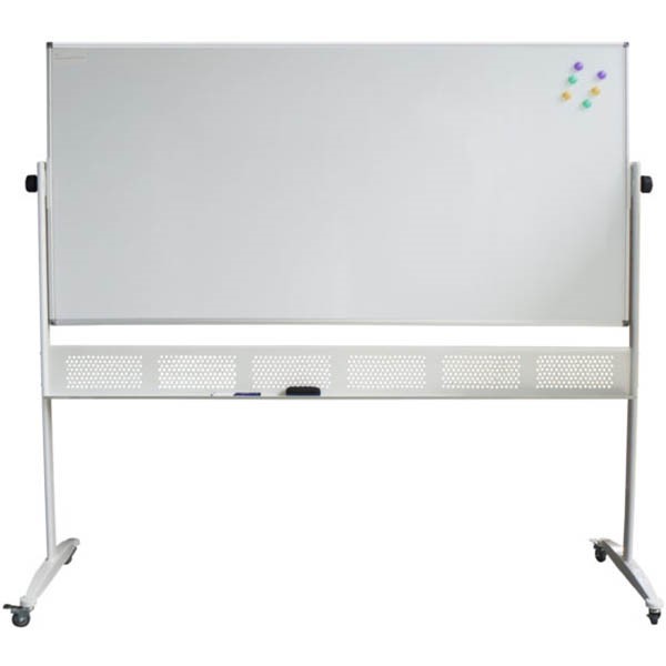 The Rapidline mobile whiteboard has a lacquered steel double sided whiteboard surface with galvanised steel backing and a low density fibreboard core - The mobile frame is double sided and pivoting with locking castors