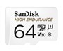 SanDisk High Endurance 64GB microSD 100MB/s 40MB/s 5K hrs 4K UHD C10 U3 V30 -40 C to 85 C Heat Freeze Shock Temperature Water