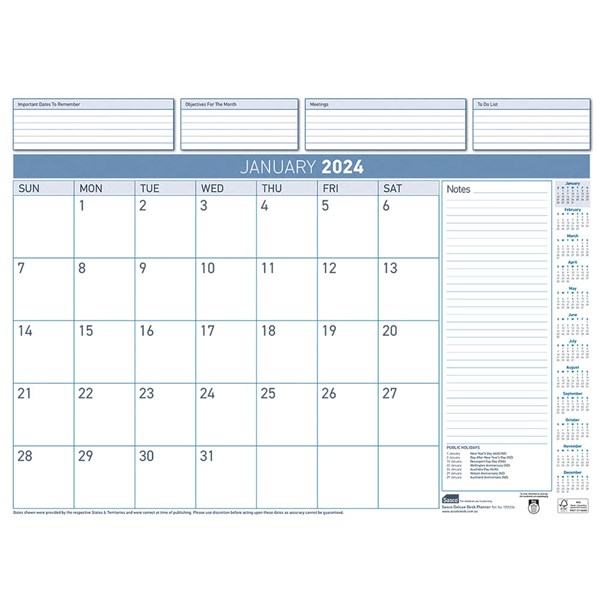 Sasco Deluxe Desk planner Refill - Features a 12 month reference and large area for notes