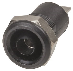 PS0420 is a panel mount socket that accommodates insulated banana plugs, with a height of only 2mm above the mounting surface. It comes in five different colors, including red, black, green, blue, and yellow, and is fully insulated.