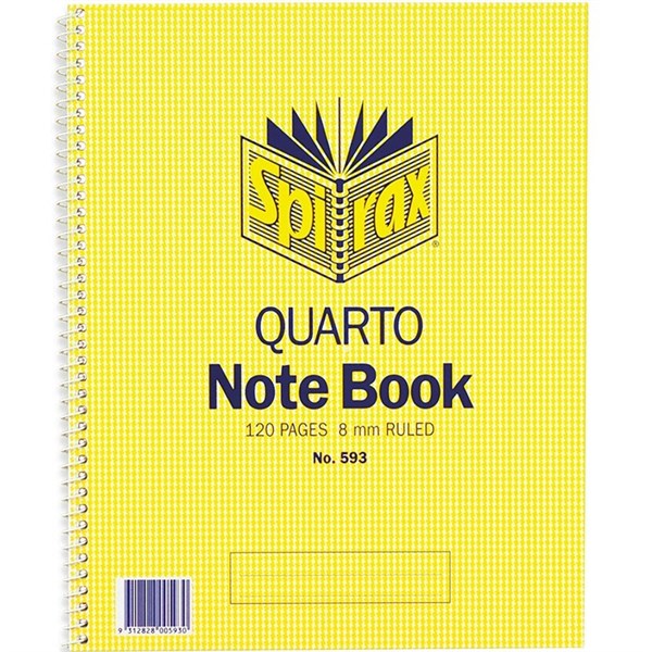 SPIRAX 593 NOTEBOOK 8MM RULED SPIRAL BOUND SIDE OPEN 120 PAGE QUARTO 252 X 200MM