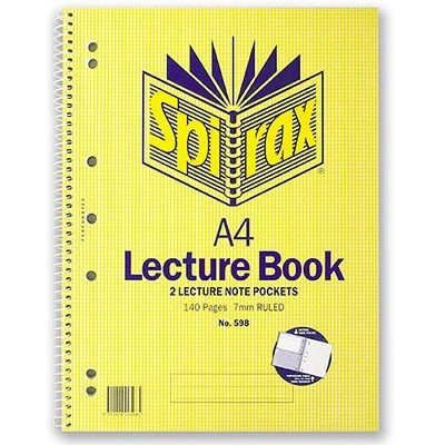 SPIRAX 598 LECTURE BOOK 7MM RULED 7 HOLE PUNCHED SPIRAL BOUND 140 PAGE A4