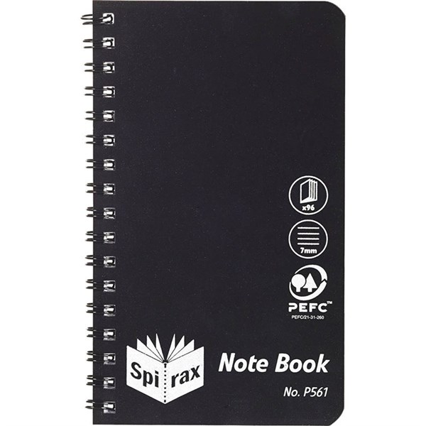 SPIRAX P561 NOTEPAD 7MM RULED SIDE OPEN 96 PAGE 147 X 87MM BLACK