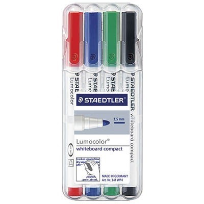 STAEDTLER 341 LUMOCOLOR COMPACT WHITEBOARD MARKER BULLET WALLET 4