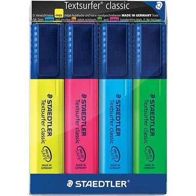 Staedtler textsurfer classic even performs perfectly on inkjet print-outs without smudging the ink and with the highlights still remaining visible after photocopying - Highlighter with large ink reservoir for extra-long highlighting performance