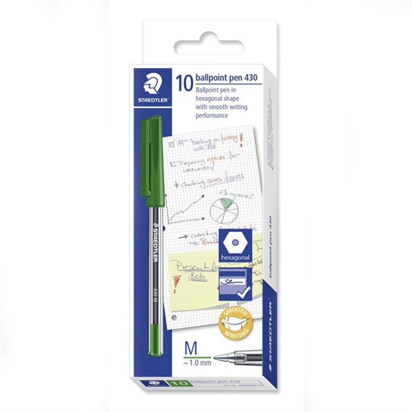 STAEDTLER 430 STICK BALLPOINT PEN MEDIUM GREEN BOX 10