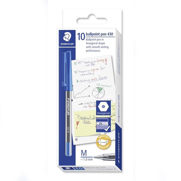 STAEDTLER STICK 430 BALLPOINT PENS MEDIUM BLUE BOX 10