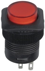 SP0704 is a short bodied pushbutton that comes in two variations. Both have a red illuminated actuator powered by a 2V red LED.