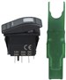The SK0914 is a rocker switch commonly seen in luxury motor cruiser cockpits, but can also be used in 4WDs, RVs, caravans, and other applications. The switch comes with a double-LED illumination and includes a standard rocker cover and a range of decals for customization. Special laser-etched covers are also available for a more professional finish. The switch is available in white, red, blue, and orange and compatible laser-etched covers include symbols for power, fridge, auxiliary battery, camper power, spot lights, horn, and rear view camera.