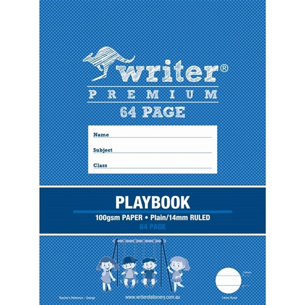 WRITER PREMIUM PLAYBOOK 14MM 1 PAGE PLAIN/ 1 PAGE RULED 100GSM 64 PAGE 330 X 240MM SWINGS