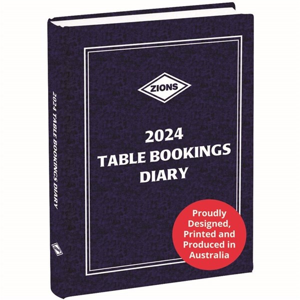 The Zions Table Bookings Diary is proudly design, printed and produced in Australia from sustainable sources - Quality table booking case bound diary, a must for any efficient restaurant, cafe or bistro
