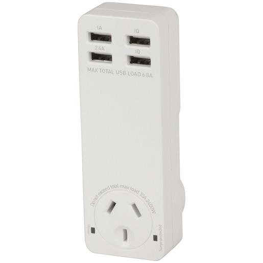ADPT MAINS AUS PLG-SKT W/4XUSB+SURG 6.8A