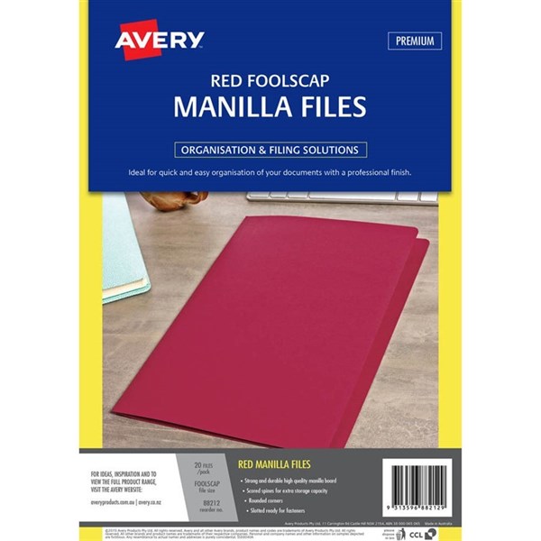 AVERY 88212 MANILLA FOLDER FOOLSCAP RED PACK 20