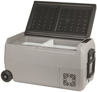 The GH1640 fridge has a 3-year warranty, holds 52 cans and is Bluetooth compatible. It can be used as a single zone or divided into two zones with independent temperature control. It can run on 12/24VDC or 240VAC, making it perfect for outdoor adventures. Its LCD screen and touch controls allow for temperature settings between -20;C and +20;C, and a separate temperature setting can make one section up to 15;C colder than the chiller. It also has a USB port and LED light.