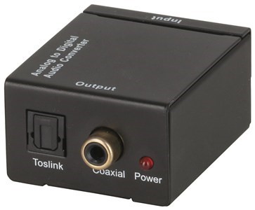 Converts analogue stereo audio to digital, with Toslink or digital coaxial outputs. High quality 48kHz sampling rate, and comes with a 1 year warranty and a mains adaptor. Inputs RCA, runs on 5VDC @ 1A.