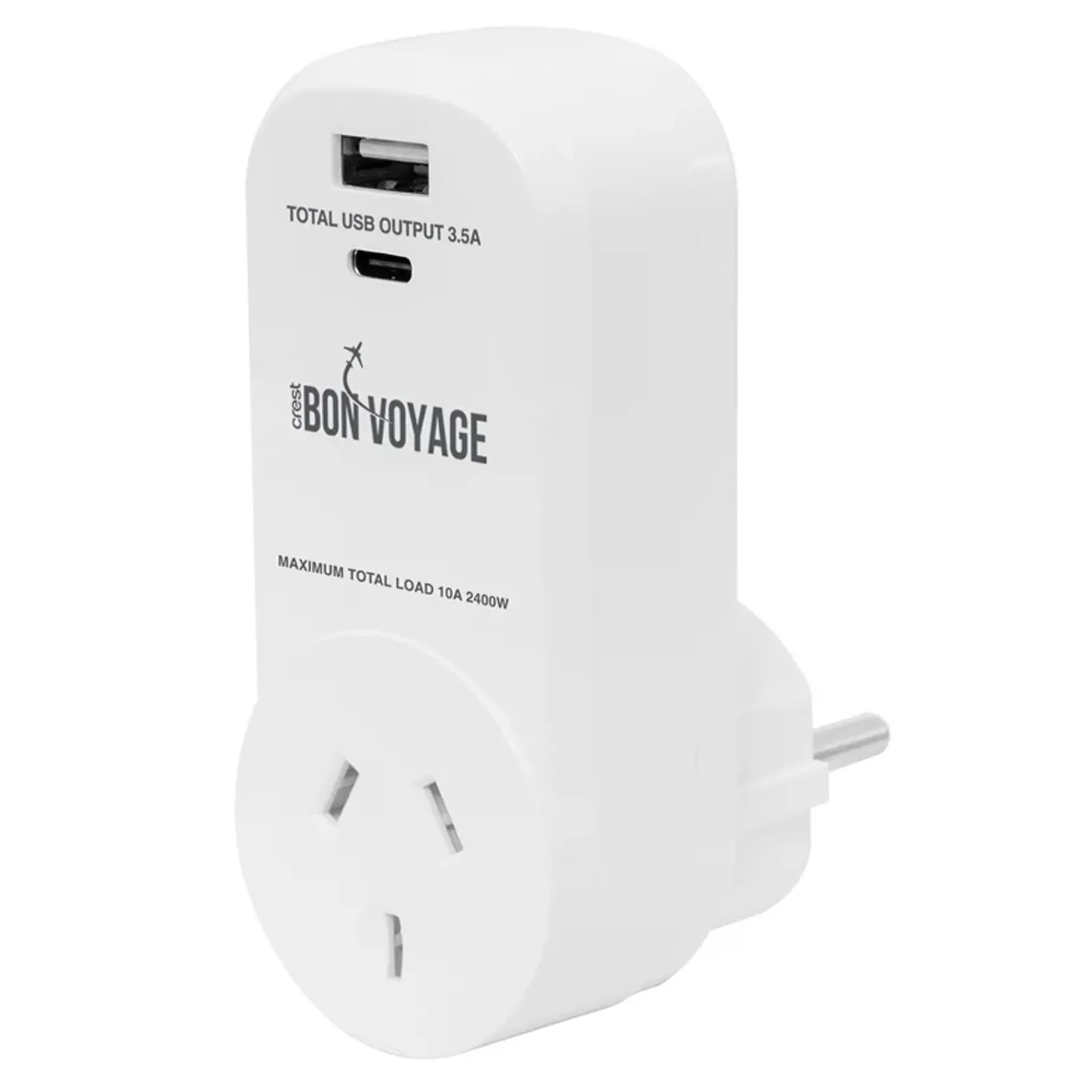 Heading to Europe? Make sure your devices power up with the Crest BON VOYAGE Travel Adaptor. This handy adapter converts Australian outlets to European ones, so you can keep your phone, camera, and other essentials charged. With two built-in USB ports and a 3.5A output, it's perfect for solo travelers or couples who need to power multiple gadgets simultaneously. We know how frustrating it is to arrive and find your electronics dead, which is why we appreciate the practicality of this adapter. It s a small item that makes a big difference on any international adventure, ensuring you stay connected and capture every moment.