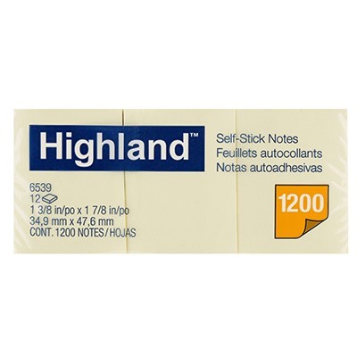 HIGHLAND SELF-STICK NOTES 40 X 50MM YELLOW PACK 12