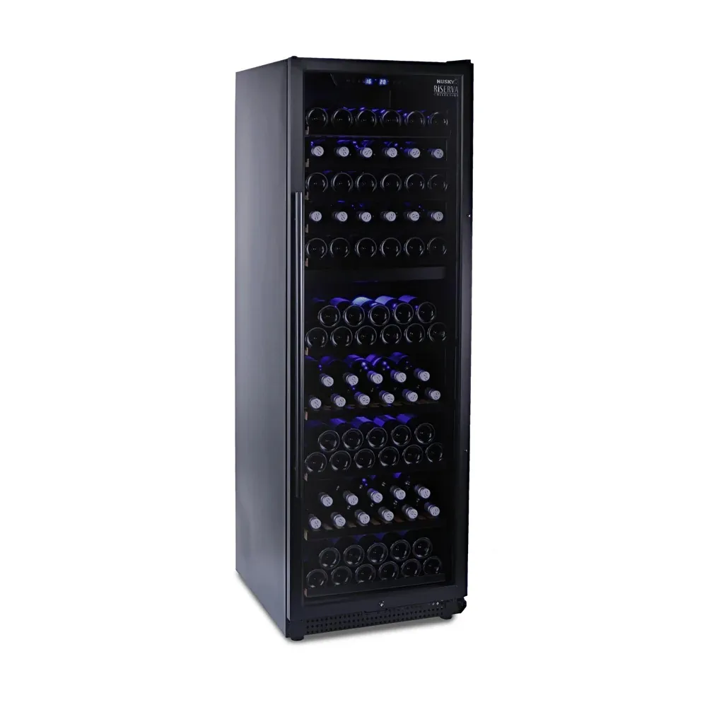 Keep your wines perfectly chilled and ready to serve with the Husky MK11 freestanding wine cooler. Featuring a sleek matt black finish, this dual-zone cooler offers precise temperature control for both red and white wines, ensuring optimal storage conditions. With 10 pull-out shelves and a stylish diamond-cut kick plate, it's designed for both functionality and aesthetic appeal in any home bar or kitchen. The integrated blue LED lighting and lock add a touch of sophistication. At Localworks, we appreciate wine storage solutions that are as practical as they are good-looking, and this Husky model certainly fits the bill.