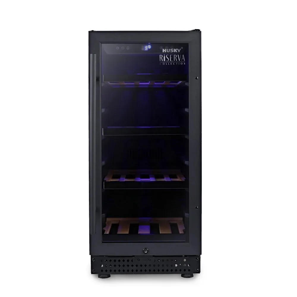 Keep your favourite wines perfectly chilled and ready to serve with the Husky MK11 freestanding wine cooler. This stylish unit features a sleek matt black finish, including the door frame and diamond-cut kick plate, making it a sophisticated addition to any home bar or kitchen. Inside, you'll find four pull-out shelves with matt front covers, ensuring easy access and organised storage for your collection. The cool blue LED lighting beautifully showcases your bottles, while the single-zone temperature control guarantees optimal conditions for all your reds or whites. At Localworks, we appreciate quality and practicality, and this Husky cooler delivers just that a reliable way to preserve and present your wine collection.