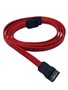 PL0980 is a red SATA data cable featuring a 7-pin female to 7-pin male connection design.