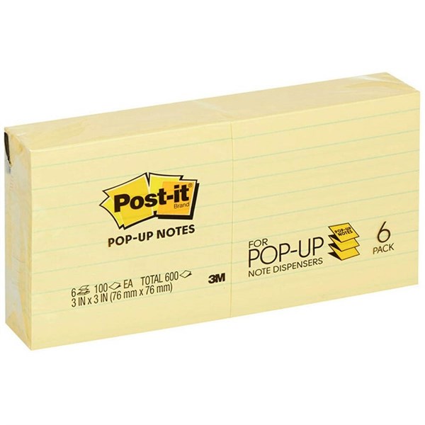 POST-IT R335-YL POP UP LINED NOTES 76 X 76MM YELLOW PACK 6