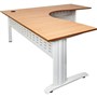 The Rapid Span Corner Desk features a 25mm melamine top with cable entries, metal legs and perforated modesty panel - The desk top is universal, this means when you assemble the desk, you can have the short side on the right or on the left, whatever suits